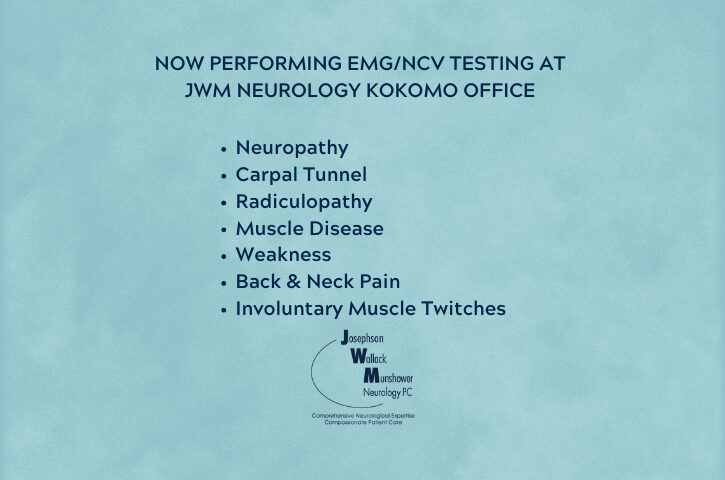 JWM Neurology EMG/NCV Testing In Kokomo, IN JWM Neurology is now performing EMG/NCV Testing at our Kokomo office.
